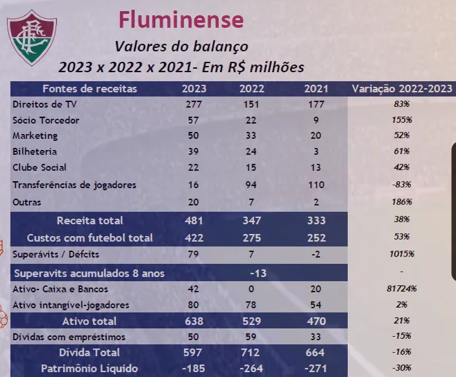 Confira abaixo um resumo do balanço do Fluminense em 2023