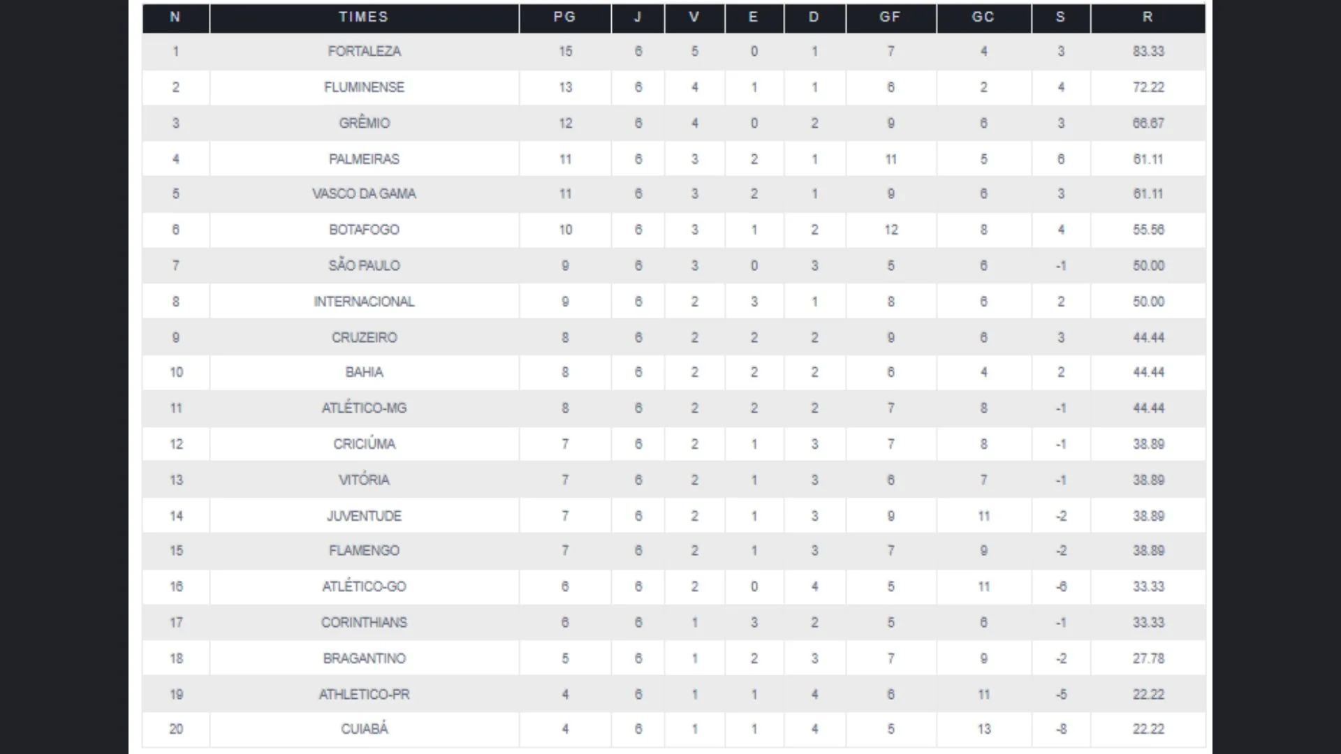 Home Futebol Brasileirão Série A tem vice-líder ‘surpresa’ no returno; veja tabela