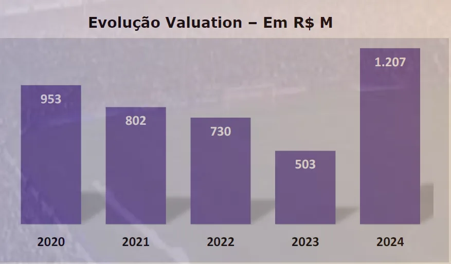 Apesar das receitas operacionais registrarem um total de R$ 364 milhões, a dívida vascaína registrou um total de R$ 749 milhões, mais da metade do valuation do clube e acima do ativo total do Gigante da Colina, que teve um valor de R$ 390 em 2023.