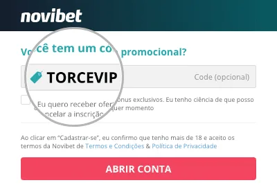 O código promocional da Novibet é TORCEVIP. Você pode usá-lo no momento do cadastro para ter acesso a todos os recursos da plataforma.