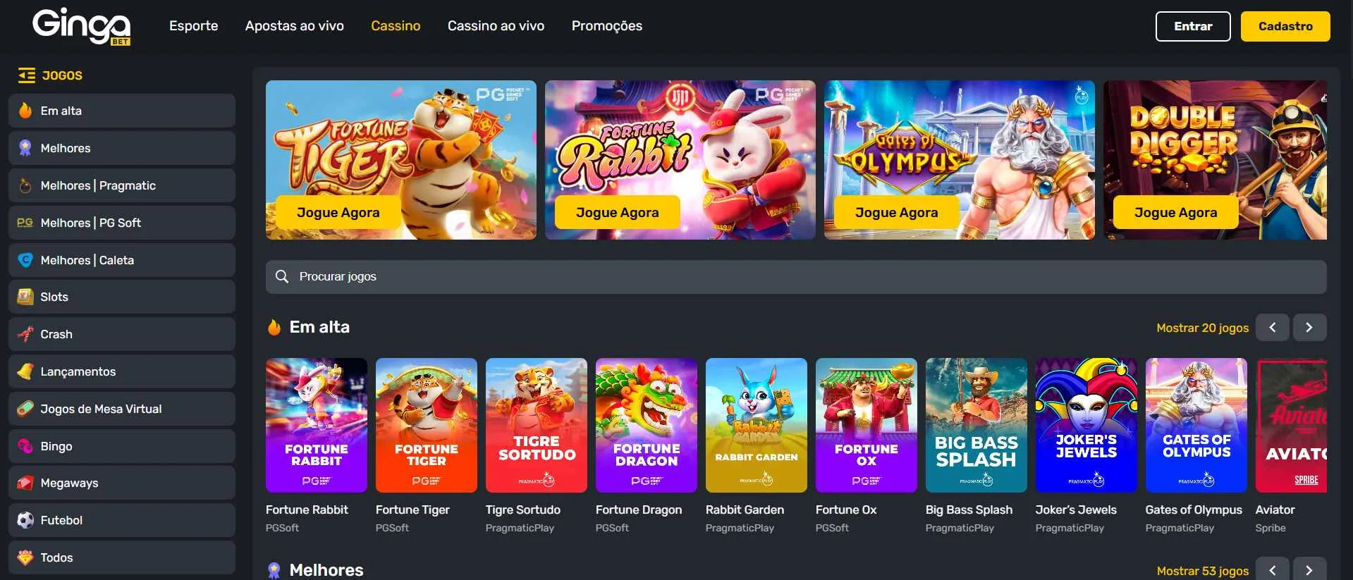 Existem vários exemplos populares de slots, como Gates of Olympus e Big Bass Crash, mas poucos são mais conhecidos hoje do que a linha Fortune. Essa linha inclui, entre outros, o Fortune Tiger, o popular Jogo do Tigrinho, presente na GingaBet e amplamente buscado por jogadores.