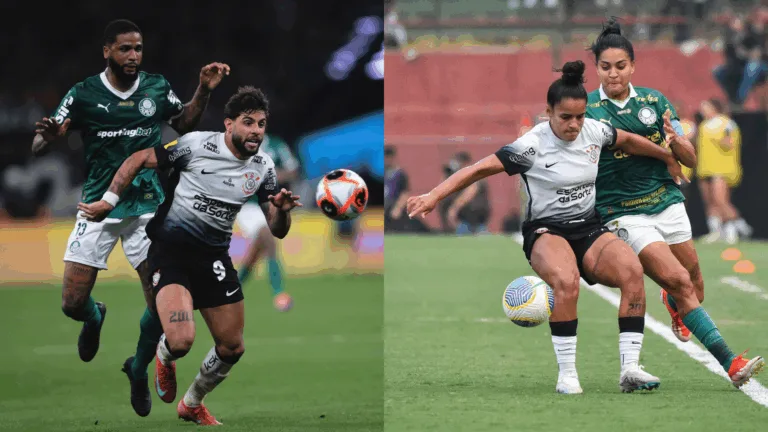 A rivalidade entre Palmeiras e Corinthians vai ao nível máximo neste sábado, 12/04. Isso porque coincidentemente as equipes se enfrentam tanto no Brasileirão Feminino quanto no Masculino no fim de semana.