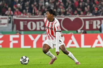 Johan Manzambi (Freiburg) durante jogo contra o Darmstadt, no dia 03.12.2025. (Foto: dpa picture / Alamy)
