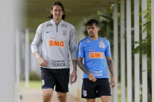Cássio e Fágner, jogadores do Corinthians após coletiva no Centro de Treinamento (IMAGO/Fotoarena)