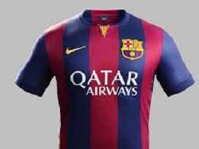 A temporada 2014/15 voltou a ter o Barcelona com a tríplice coroa. Com o trio MSN em campo, o time foi um dos mais letais dos últimos anos e vestiu a camisa listrada azul e grená com pequeno detalhe na frente em laranja e amarelo.