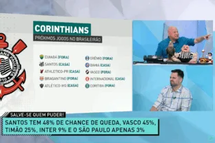 No último domingo (22), o Corinthians passou aperto contra o lanterna do Brasileirão, mas conseguiu buscar empate em 1 a 1 com o América-MG. Já nesta terça (24), durante o programa ‘Jogo Aberto‘, da Band, o jornalista arrancou risos dos colegas ao responder a Ronaldo Giovaneli qual conselho daria a Mano Menezes frente à sequência de jogos do Timão na competição.