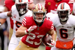 Antes de se machucar no confronto contra os Browns, Christian McCaffrey chegou a 15 partidas consecutivas anotando touchdowns (contando temporada regular e playoffs). Esta é a maior sequência da história da NFL, empatada com o recorde dos jogadores de Hall da Fama Lenny Moore, John Riggins e O.J. Simpson, que também conseguiram TDs em 15 jogos seguidos.