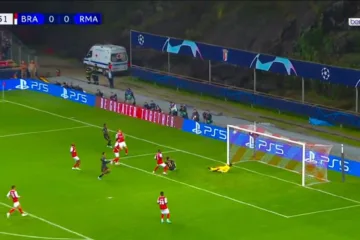 O Real Madrid marcou o primeiro do jogo desta tarde (24), contra o Braga, pela Champions League. O tento espanhol foi concretizado por Rodrygo, silenciando a torcida portuguesa que lotou o estádio Municipal de Braga.