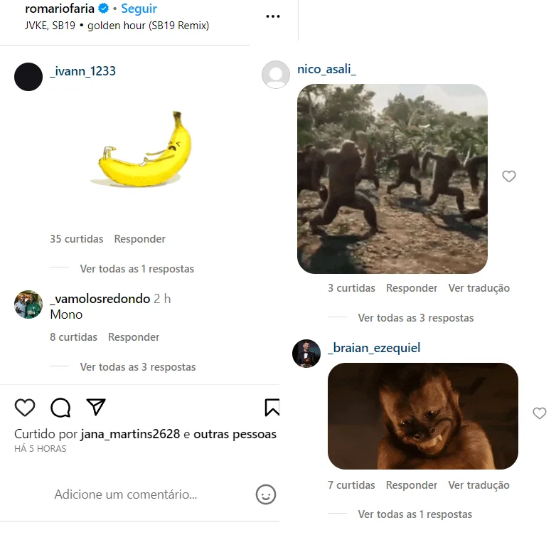 Neste cenário, além de ser criticado pelo Diário Olé, Romário sofreu ataques racistas no Instagram. Isso porque torcedores do Boca Juniors publicaram imagens de macacos e chamaram o tetracampeão do mundo de “mono” (macaco em espanhol).