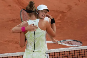 Bia e Iga se abraçam após a semifinal em Roland Garros 2023 (Divulgação/Roland Garros)
