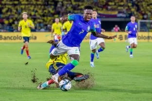 Nesta quinta-feira (16), a seleção brasileira visitou a Colômbia, pela quinta rodada das Eliminatórias da Copa e não teve uma noite feliz. Além da derrota de virada para os colombianos, o Brasil perdeu Vinícius Júnior, que sentiu lesão. Diante disso, o jornal espanhol ‘Sport’ repercutiu a contusão do brasileiro e criticou a FIFA pelo fato do atleta se contundir em compromissos da entidade e se tornar dúvida quando reapresentar ao Real Madrid.