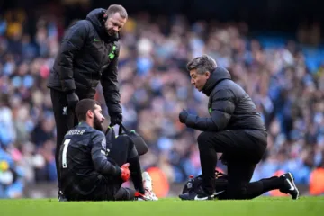 Titular em Manchester City x Liverpool, o goleiro Alisson sentiu um desconforto muscular, nos minutos finais do jogo válido pela 13ª rodada do Campeonato Inglês (Premier League). O jogador dos Reds massageou a parte inferior da coxa direita e recebeu atendimento médico, no gramado do Ettihad Stadium.