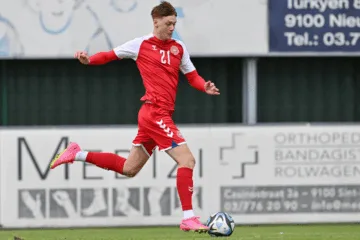 Foto de Tristan Aldcroft Panduro em jogo da seleção de base da Dinamarca