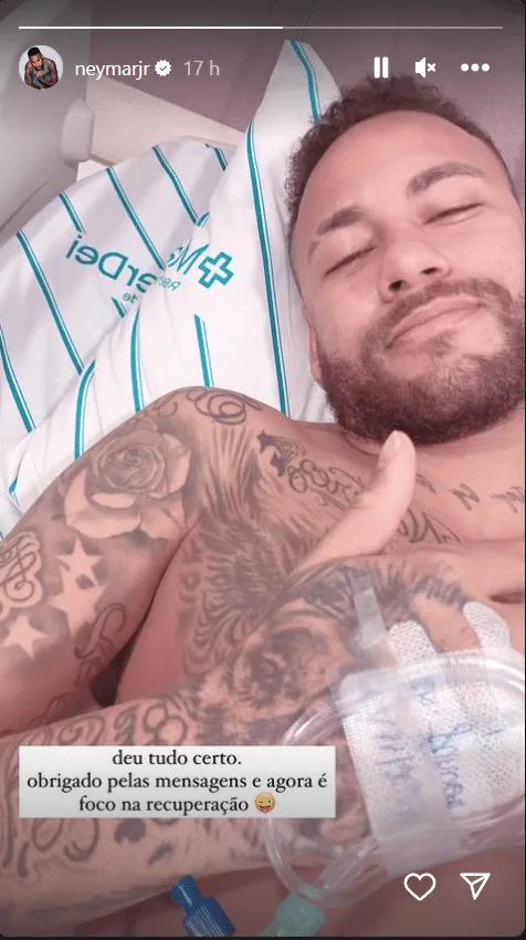 “Deu tudo certo. Obrigado pelas mensagens. Agora é foco na recuperação”, publicou o atacante, em stores na rede social Instagram.