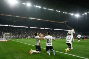 Jogadores do Corinthians comemoram gol na Neo Química Arena
