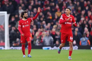 O primeiro tempo começou “morno”, com poucas chances criadas. A melhor foi com Darwin Nuñez, que aproveitou um chute para dominar na área e marcar. Entretanto, o centroavante estava impedido por alguns centímetros. Poucos minutos depois, o uruguaio balançou as redes de bicicleta após cobrança de escanteio, mas novamente o gol foi anulado. Se o camisa 9 não abriu o placar, deu o passe para Mohamed Salah, com tranquilidade na área, colocar os donos da casa à frente no marcador. O egípcio poderia ter ampliado a vantagem nos acréscimos, porém, acabou finalizando para fora.