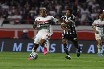 O duelo continuou ofensivo no segundo tempo. Soteldo chutou pra fora e Messias teve uma cabeçada defendida por Rafael.
