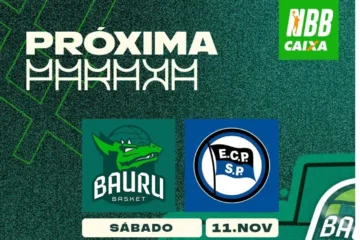Neste sábado, 11 de novembro, a TV Cultura exibe a partida, pela quarta rodada do NBB (Novo Basquete Brasil), entre Bauru Basket e Pinheiros, diretamente do Ginásio Panela de Pressão, em Bauru. Com narração de Gil Arruda e comentários do ex-árbitro, Renatinho. A transmissão abre a partir das 16h45 e o jogo começa às 17h.