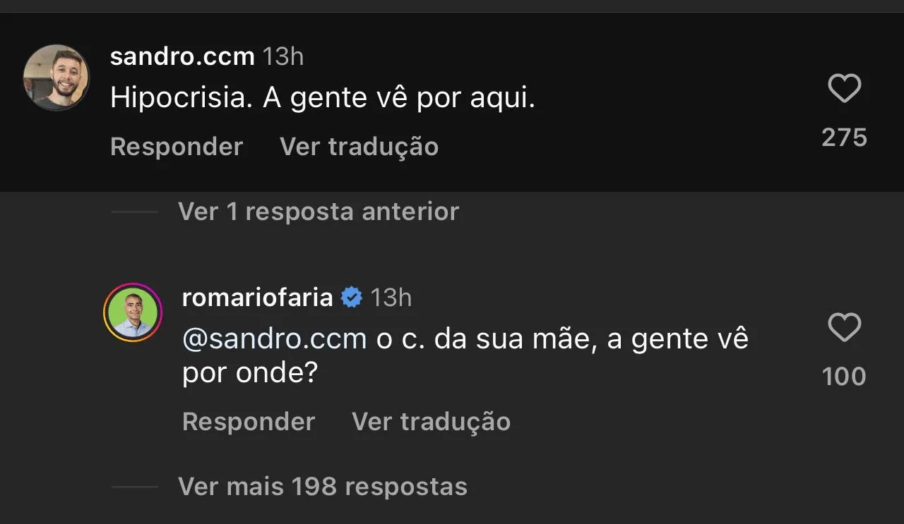 Em publicação com uma mensagem religiosa, Romário acabou sendo atrelado a um discurso de contradição. Sem tolerar o recado, houve uma resposta bastante forte e que logo foi notada no espaço em questão. Apesar do risco envolvendo um processo pela postura, o comentário segue presente no perfil do senador.