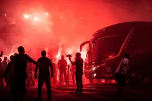 Torcedores do Santos fazem ‘corredor’ de fogo durante recepção aos jogadores