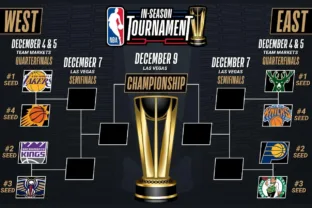Nesta segunda-feira (4) e terça-feira (5), as finais da Copa da NBA, o In-Season Tournament serão disputadas. Oito times — sendo quatro da Conferência Leste e quatro da Oeste — competem pela chance de jogar as semifinais e a final do torneio em Las Vegas, marcada para os dias 7 e 9 de dezembro, respectivamente.
