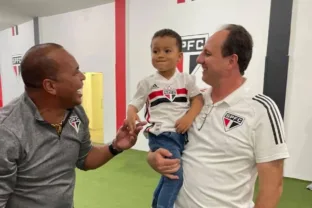 Aloísio apresenta o filho a Rogério Ceni