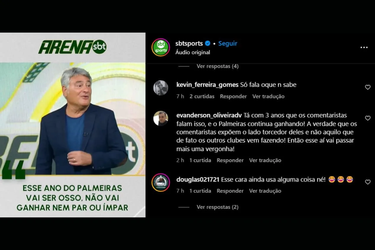 Na própria publicação do perfil do “SBT Sports”, diversos palestrinos criticaram Cicinho pela projeção fixada, apontando que ele irá “errar feio”.