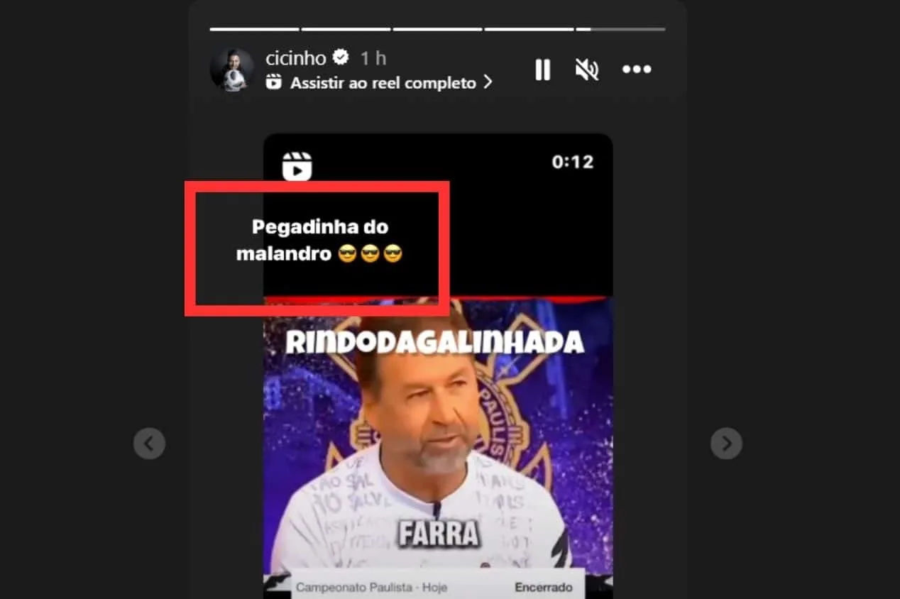 Nos stories do Instagram, Cicinho compartilhou o vídeo com as falas ditas no final do ano passado e legendou na seguinte forma: “Pegadinha do Malandro”. Tudo isso após o revés do time de Mano Menezes para o Ituano, pela segunda rodada do Brasileirão.