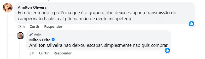 “Não deixou escapar, simplesmente não quis comprar“, respondeu Milton Leite.