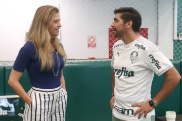 Leila Pereira e Abel Ferreira em conversa no CT do Palmeiras (Foto: Cesar Greco/ Palmeiras)