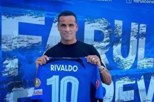 Rivaldo segura camisa do Farul Constanța, da Romênia