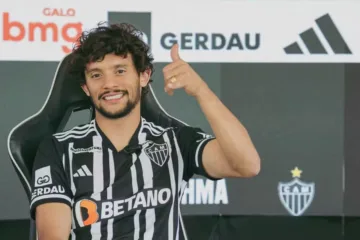 Gustavo Scarpa em entrevista coletiva no Atlético-MG. (Foto: Pedro Souza/ Atlético Mineiro)
