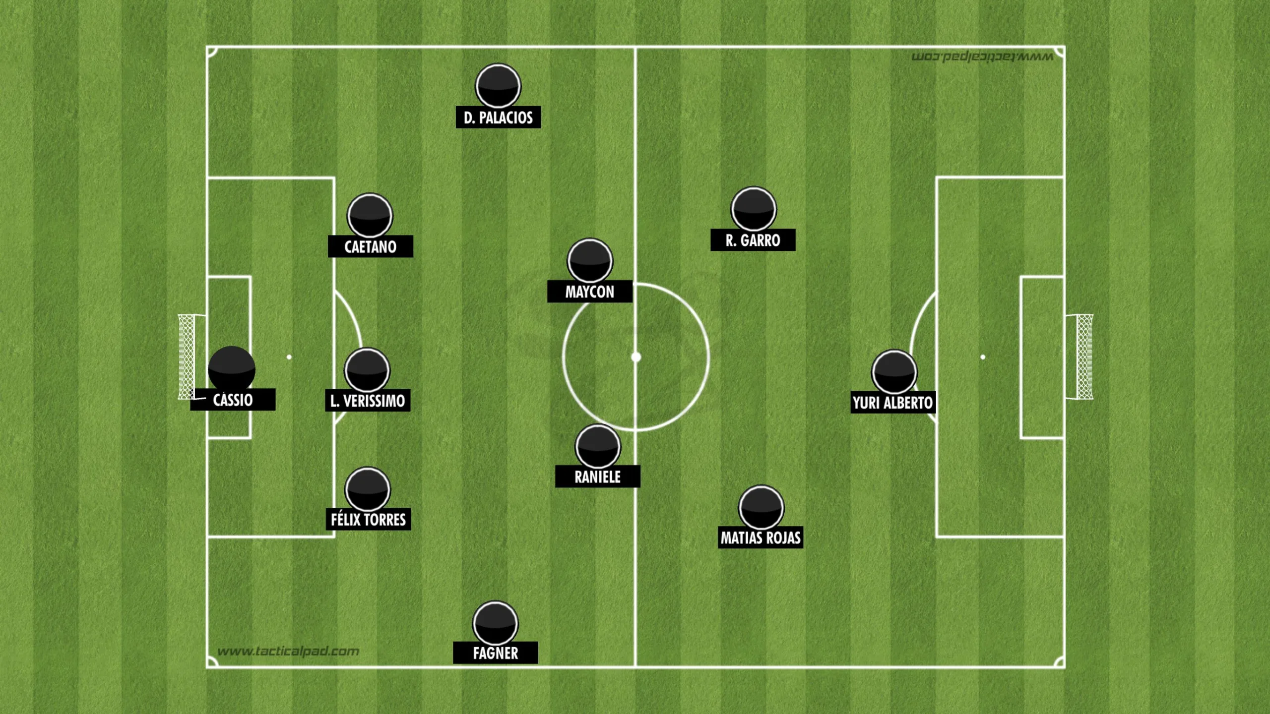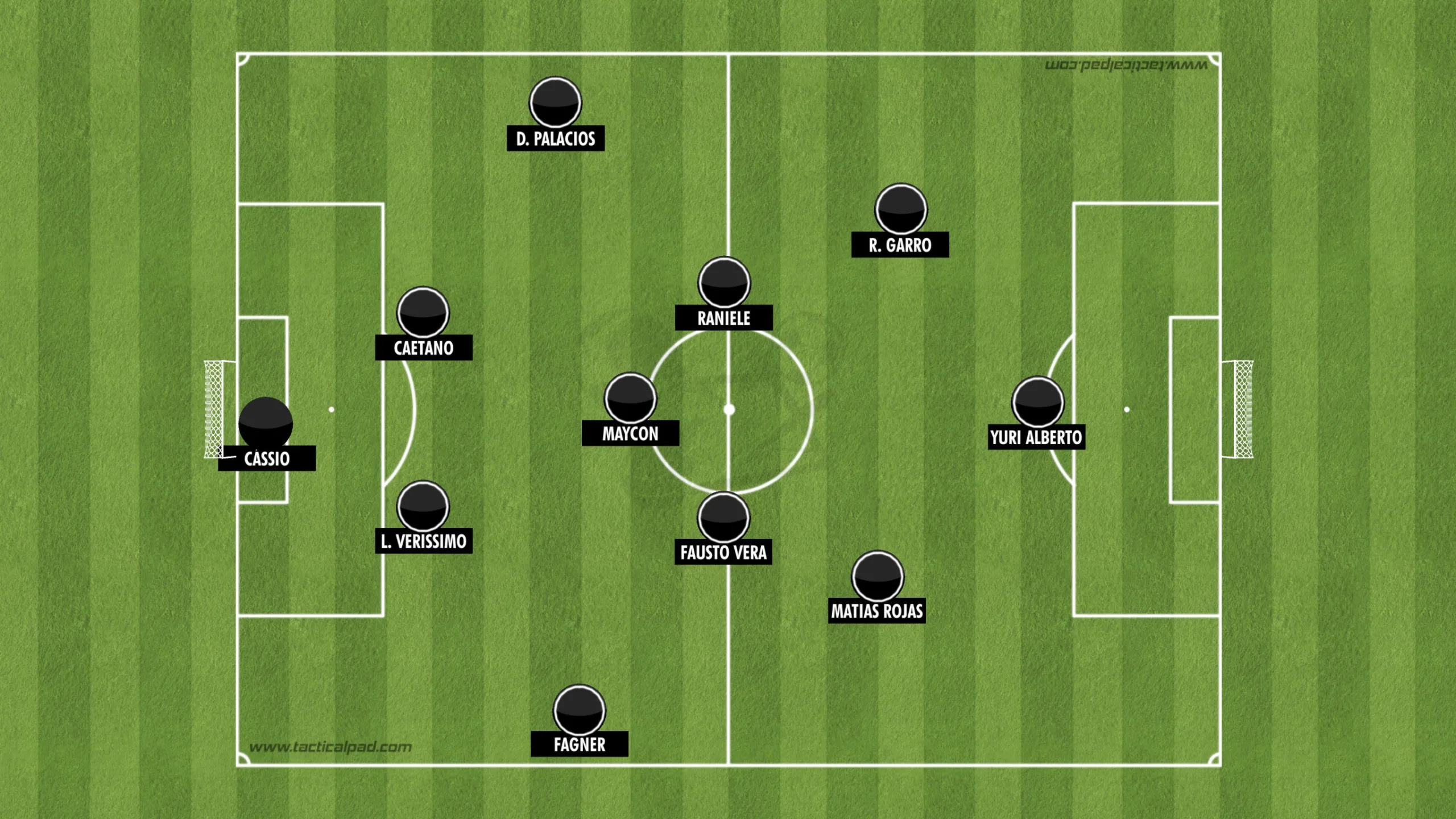 Com a qualidade defensiva de Palacios, essa opção deixaria Rodrigo Garro e Matías Rojas com menos responsabilidades na marcação, podendo focar mais nas ações ofensivas.