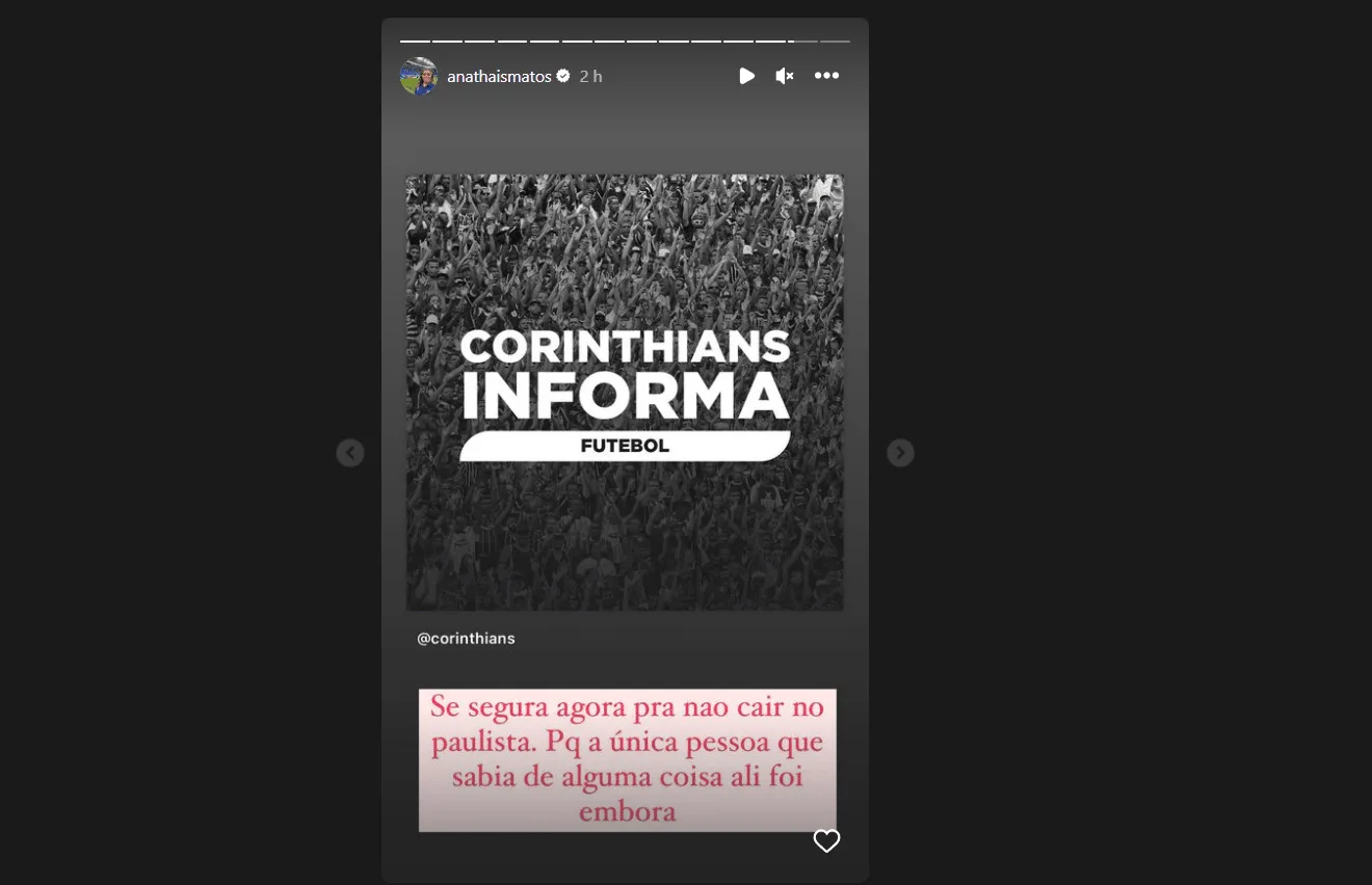 “Se segura agora pra não cair no Paulista. Porque a única pessoa que sabia de alguma coisa ali foi embora.”, escreveu Ana Thaís, no Instagram.