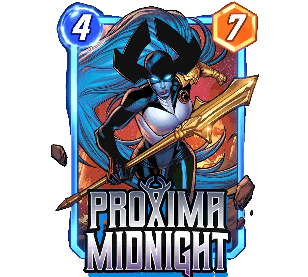 Ao ser descartada, Proxima é adicionada ao local onde você tiver menos poder, se não estiver cheio, sendo uma boa opção para decks também baseados em descartes, com o próprio Corvus, mas também com Blade, Lady Sif ou Modok.