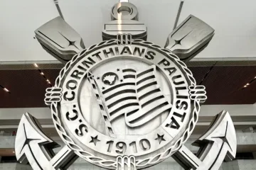 Escudo do Corinthians na Neo Química Arena. (Crédito: Alexandre Kocinas / Corinthians)