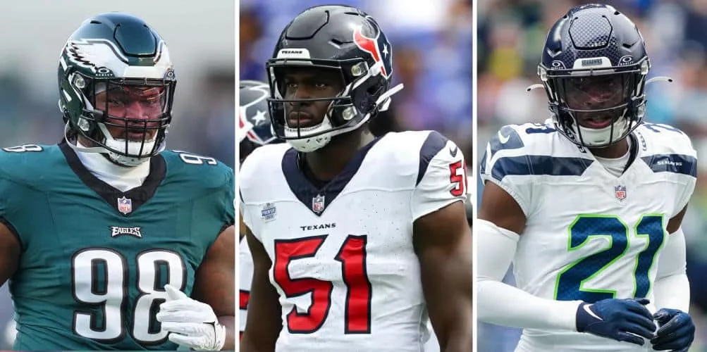 Os dois nomes que despontam na corrida pelo prêmio de novato defensivo são Jalen Carter e Will Anderson Jr, com Devon Witherspoon correndo por fora. Carter foi um dos melhores jogadores da defesa dos Eagles na temporada e causou muitos problemas para os adversários no meio da linha defensiva. Ele terminou o ano com 6 sacks, 2 fumbles forçados, um touchdown, 8 tackles para perda de jardas e um dos melhores aproveitamentos para DTs quando atacam os QBs.