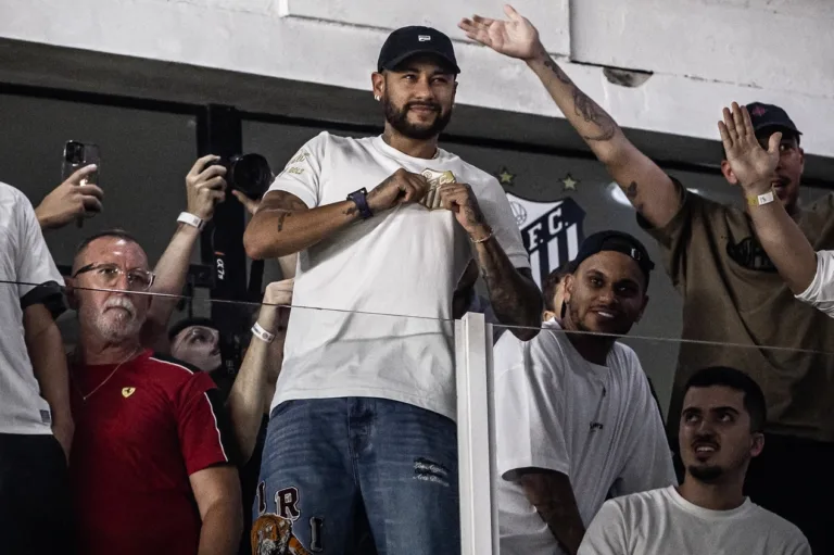 Neymar esteve presente na Vila Belmiro para acompanhar a vitória do Santos sobre o Corinthians por 1 a 0, na última quarta-feira (07) pelo Paulistão. O atacante do Al-Hilal atualmente se recupera de uma cirurgia no joelho esquerdo, realizada no início de novembro.