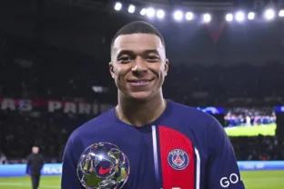 Mbappé recebe prêmio com a camisa do Paris Saint-Germain (PSG)