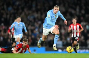 O Manchester City inaugurou o marcador contra o Brentford na tarde desta terça-feira (20), em duelo válido pela Premier League, no Etihad Stadium. O tento foi convertido por Erling Haaland, durante o segundo tempo.
