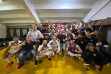 Jogadores do Brusque comemoram o triunfo sobre o Tigre (Reprodução Brusque - Twitter)