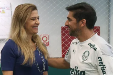Leila Pereira e Abel Ferreira no CT do Palmeiras (Cesar Greco/Palmeiras)