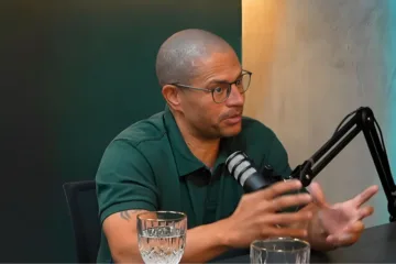 Alex durante entrevista para podcast (Reprodução - Pense Nisso - YouTube)