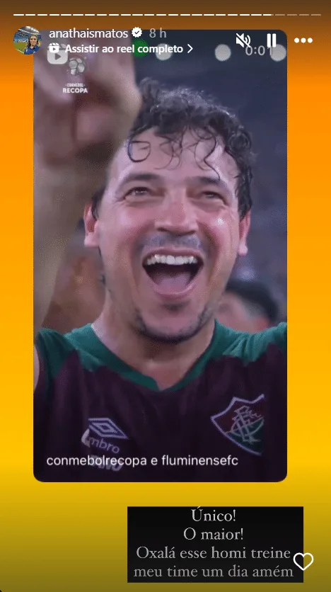“Aiaiai… como é bom ser dinizista“, completou Ana Thaís, também na rede social, como legenda para uma foto do Fluminense campeão da Recopa.