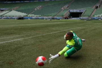 Weverton em treino do Palmeiras no Allianz Parque. (Créditos: Cesar Greco/Palmeiras/by Canon)