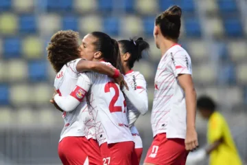 O bom momento das Vingadoras acabou neutralizado no final da etapa. Letícia Teles se beneficiou de um escanteio para inaugurar o marcador aos 40 minutos.