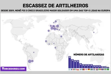 O futebol brasileiro, que sempre foi um conhecido celeiro de grandes artilheiros como Pelé, Ronaldo, Romário, Careca, Serginho Chulapa e Roberto Dinamite, entre tantos outros, vive uma verdadeira escassez de artilheiros. Nas cinco principais ligas europeias, desde que Grafite foi artilheiro do Campeonato Alemão em 2009, somente um brasileiro conseguiu tal feito: o meia Nenê, pelo Paris Saint-Germain, na liga francesa da temporada 2011/22. Estes e outros dados foram obtidos por levantamento exclusivo do Torcedores.com, que também conversou com goleadores históricos sobre o tema.