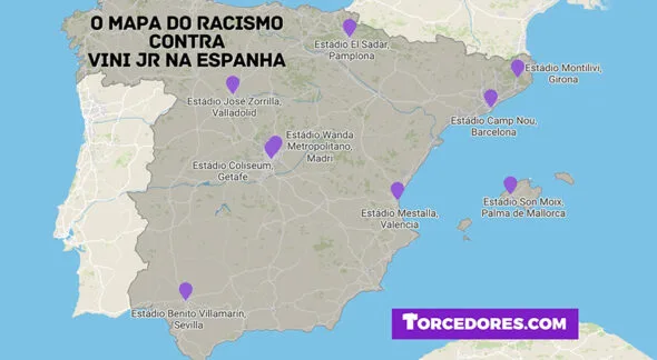 Por mais que seja no estádio que é considerado sua casa, o camisa sete usou os holofotes para, mais uma vez, denunciar a realidade que vive em território espanhol desde quando chegou. O levantamento do Torcedores.com mapeia os estádios onde Vinícius Júnior já recebeu insultos racistas e mostra como isso afeta dentro de campo.