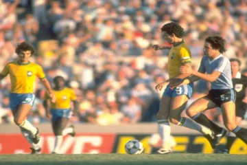 Sócrates, a direita, em jogo entre o Brasil e a Argentina (Getty Images / Allsport UK /Allsport)