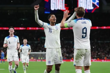Bellingham e Harry Kane comemoram após gol marcado pela seleção da Inglaterra (Reprodução/X/Seleção Inglesa)